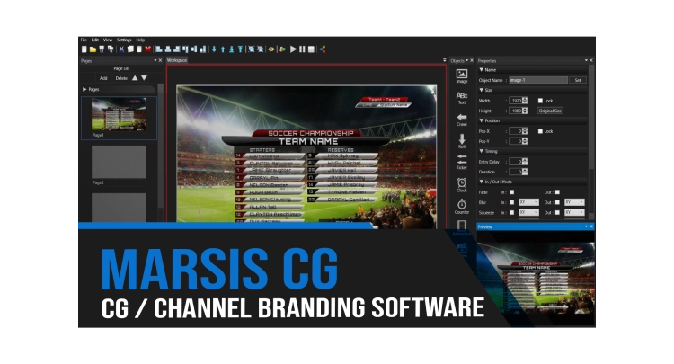 Marsis CG is an easy to use and powerful unlimited layer Graphics Engine designed for TV Channels, Info Screens, Digital Signage applications and more.