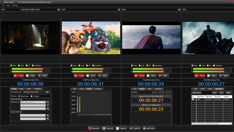 Marsis Ingest, IP ve Video girişlerine sahip çok profilli bir kayıt çözümüdür. Ingest, tek bir kaynaktan 3 farklı dosya türü oluşturabilir.