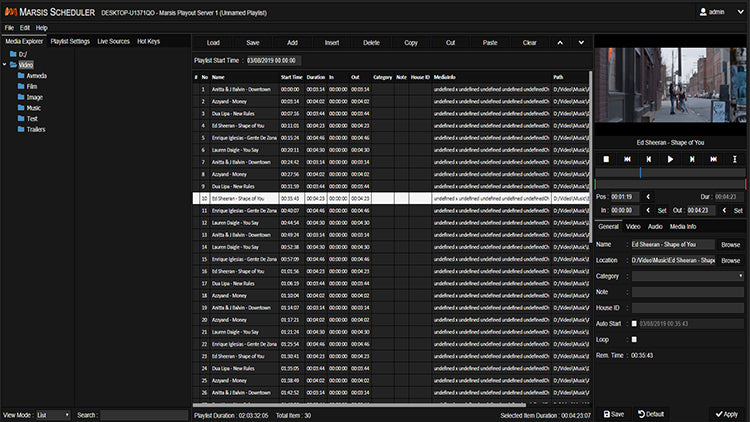Günlük Oynatma ListesiMarsis Playout, Marsis Scheduler veya herhangi bir üçüncü taraf planlama yazılımında oluşturulan Günlük Çalma Listelerini zahmetsizce yükleyecek ve oynatacaktır.
