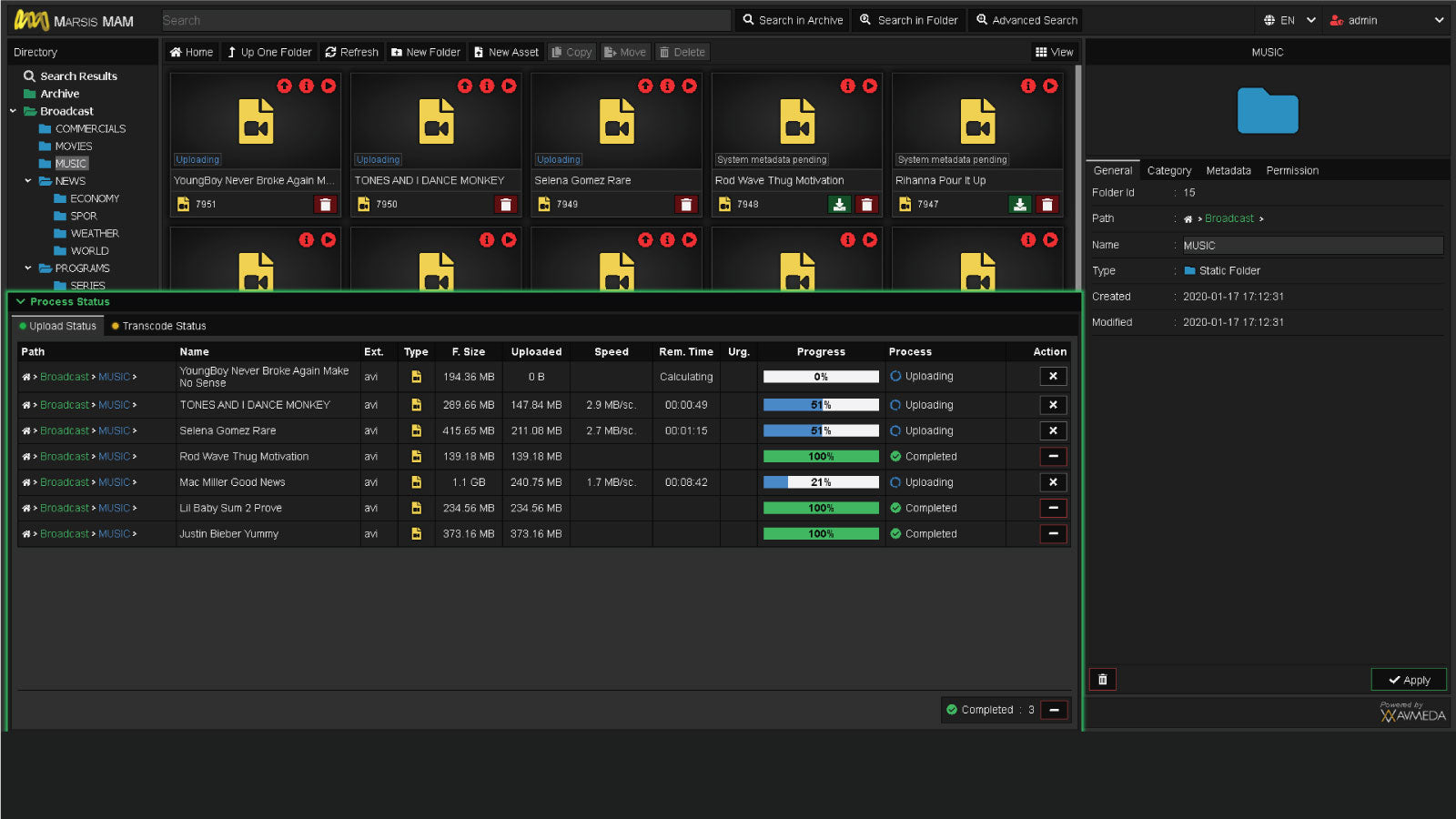 Marsis MAM, web arayüzünde yüzlerce kişiye hizmet verebilen güçlü bir varlık yönetim sistemidir. Çok koltuklu çalışma, her kullanıcının proxy dosyalarına aynı anda erişmesine, önizleme yapmasına, arama yapmasına ve hatta düzenleme yapmasına olanak tanır. MAM, ölçeklenebilir web sunucuları, arama motoru ve arka planda transkoderler ile benzersiz bir sistem tasarımına sahiptir.